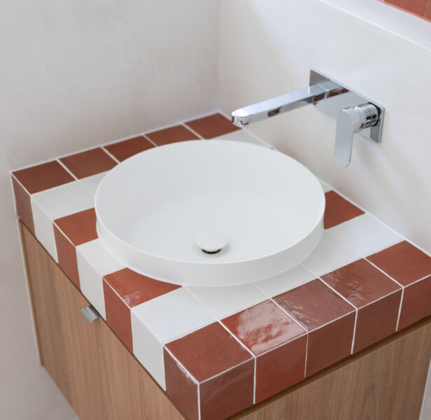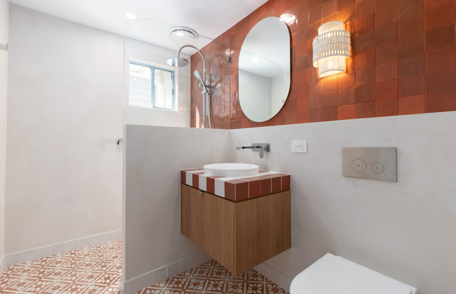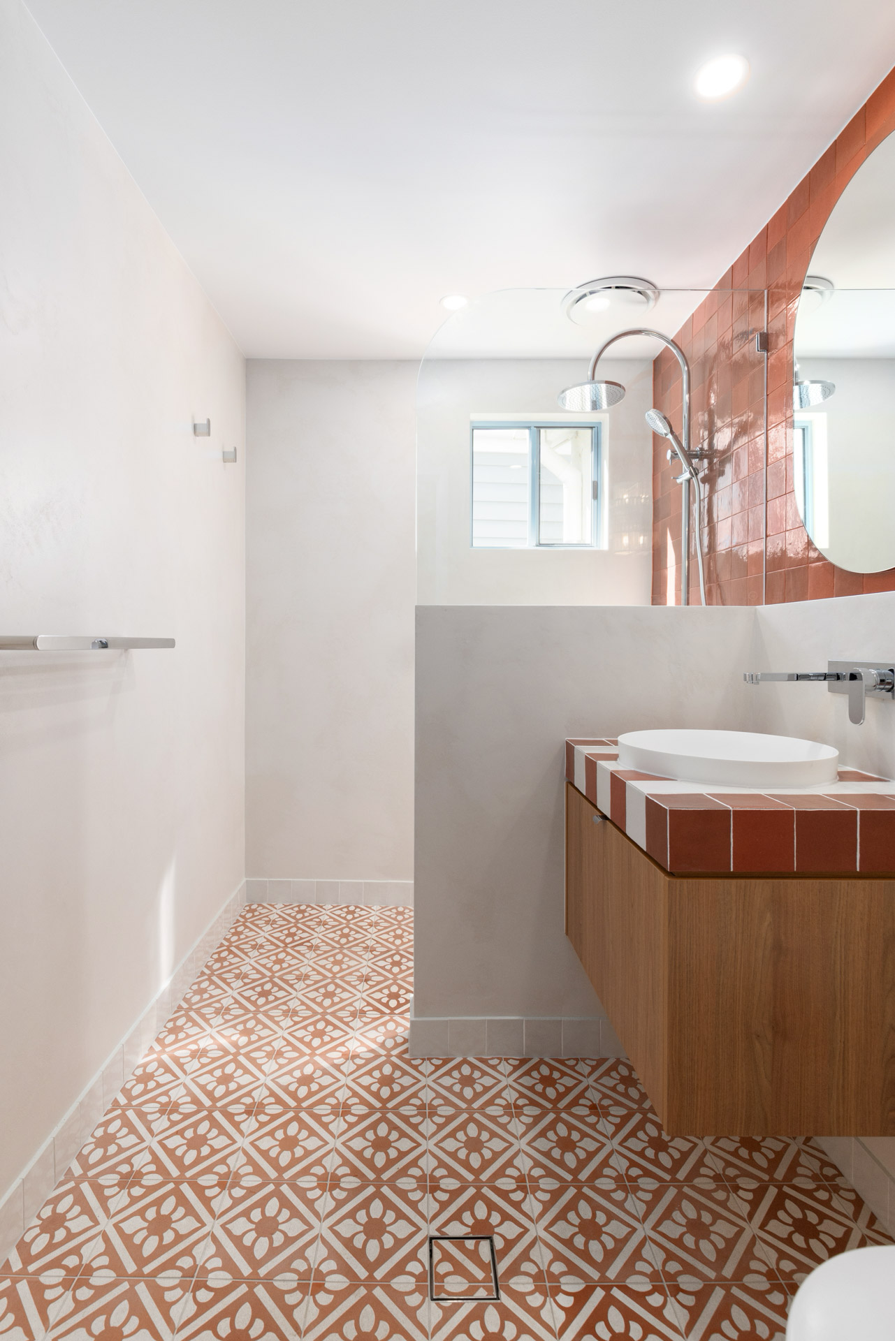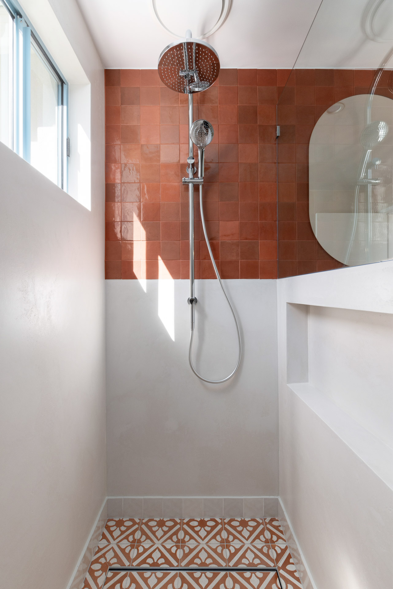 The combination of earthy orange hues with clean white tones balances vibrancy and serenity, while the handcrafted finishes ensure the bathroom feels both authentic and unique. The result is a joyful, contemporary bathroom that celebrates tradition through artisanal tiles while delivering a fresh, fun, and highly personalised upgrade.