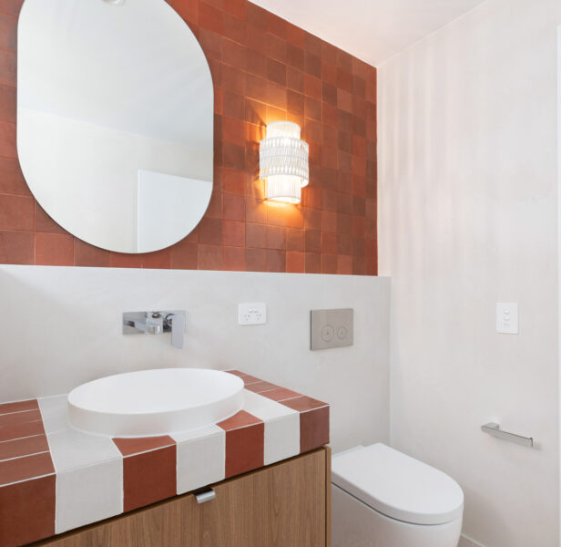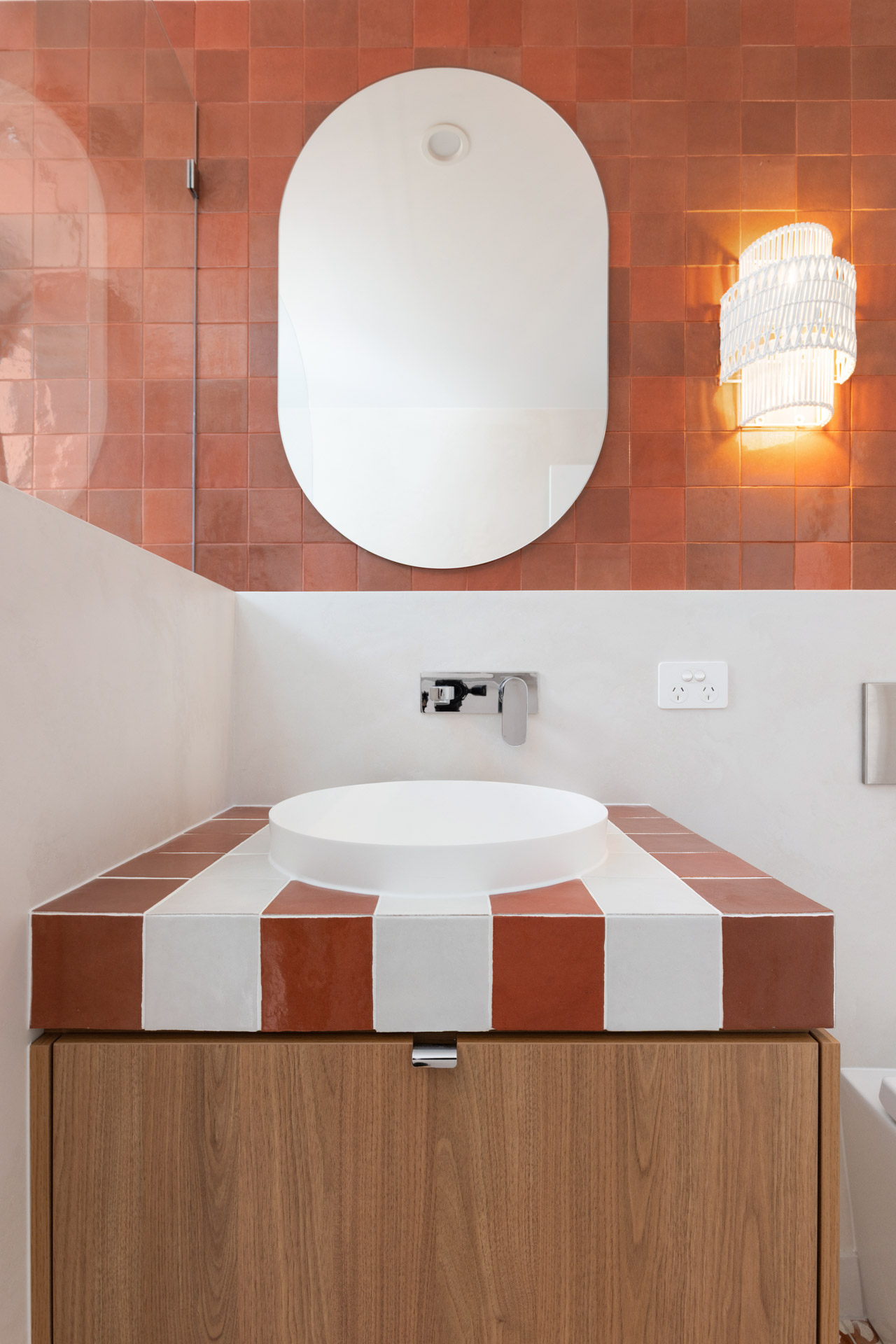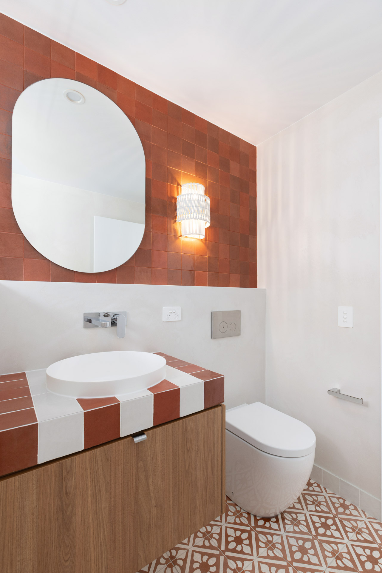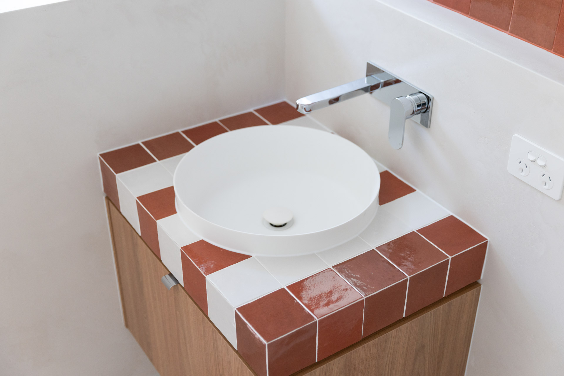 The combination of earthy orange hues with clean white tones balances vibrancy and serenity, while the handcrafted finishes ensure the bathroom feels both authentic and unique. The result is a joyful, contemporary bathroom that celebrates tradition through artisanal tiles while delivering a fresh, fun, and highly personalised upgrade.